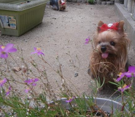 アーニャはお花に興味を持ったようです。