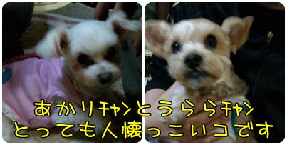 あかりちゃん→マルチーズ、うららちゃん→ヨーキーです。