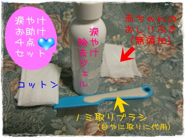 アーニャの場合は生後3ヶ月ころからフードや、涙やけ除去剤をいろいろいろいろ試してみましたが、なかなか改善されませんでした。