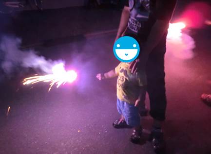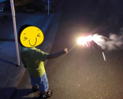 実家に行くと、姪や甥がうれしそうに花火をしていました。