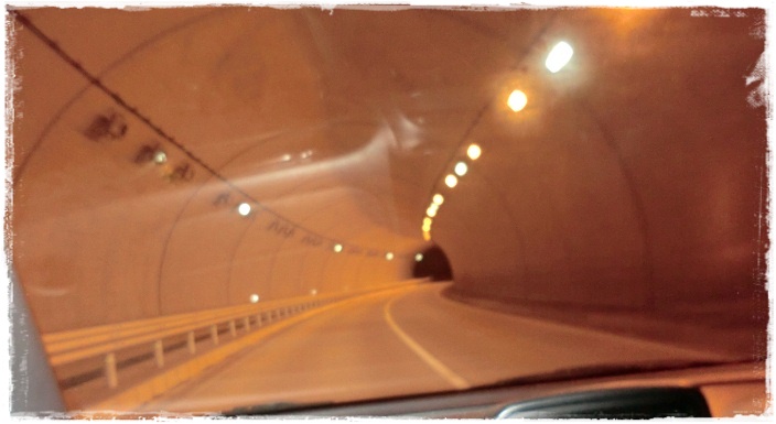 山の上まで補正された道路で、きれいなトンネルを抜けると・・・