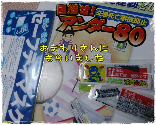 チラシ、反射板、眠気防止ガム、なぜかマスクなど・・・。