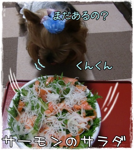 みんなお寿司ばかりに目がいって、冷蔵庫のサラダを忘れていた模様。
