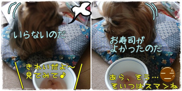カンペキすねておりました(笑)スパロウには悪かったけど、お寿司もお吸い物もデザートもおいしかったよ