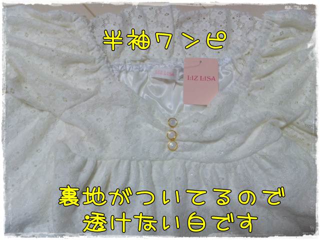 白のレースワンピ。