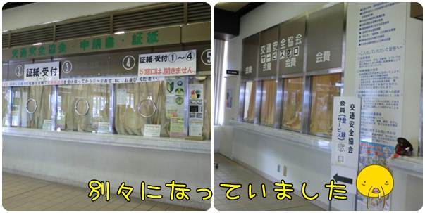 帰るときに撮ったので閉まってますが、右の交通安全協会の窓口には、4,5人くらいに対し、左の写真の受付にはすごく人が並んでいました。