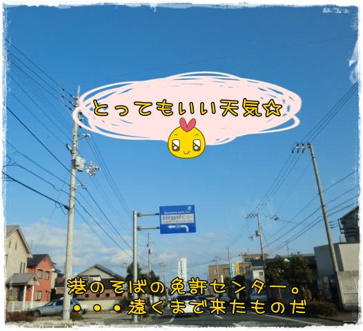 港のそばの免許センターで、市内でも端の方なので、でも娘の家からは45分はかかります。