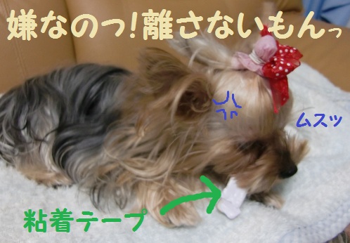 ママ、素早く粘着テープを引っ込める。