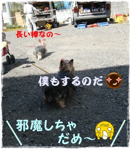 大工さんの邪魔しちゃだめだからね。う~ん、念のためリードしているから、大丈夫かな。