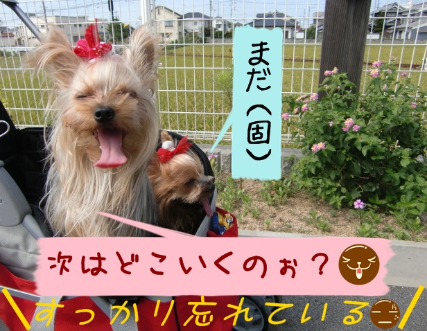 歩いてのお散歩はもちろん、ドクターストップ。