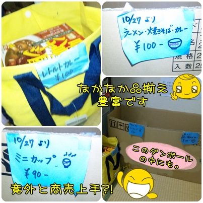 この、お夜食ダンボールの中には、たくさんの種類の即席で作れる食べ物がはいっているんですが・・・。